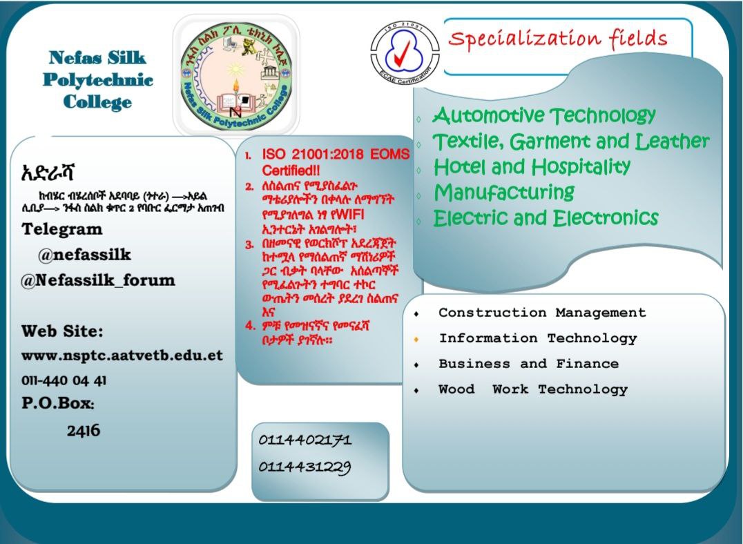 በቴክኒክ ፣ ሙያ ፣ ስልጠና እና ቴክኖሎጂ ልማት እንዲሁም በመረጃ የበለጸገ ማህበረሰብ ለመፍጠር ሁሌም እንተጋለን!!